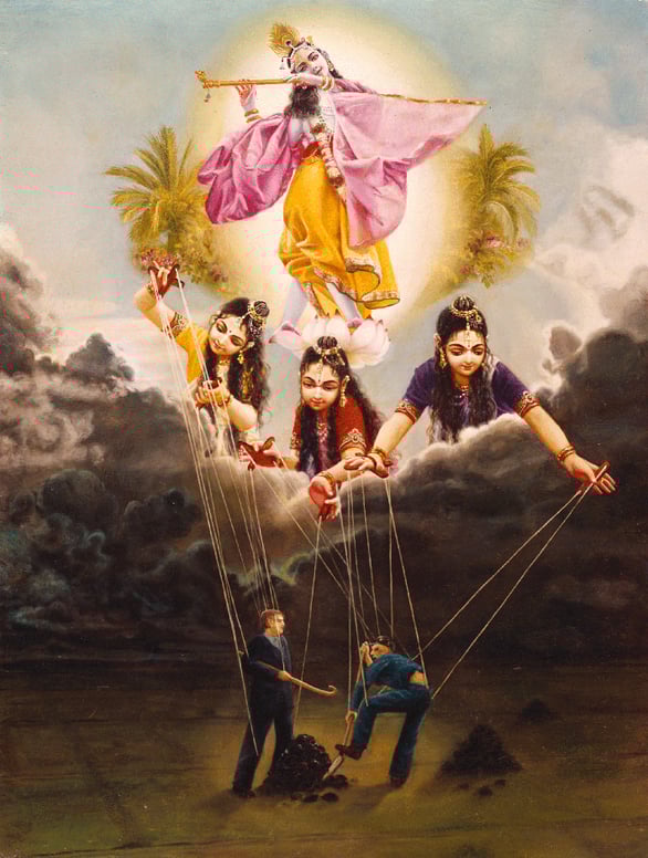 Durch das Wirken der Gunas werden wir wie willenlose Marionetten gesteuert. Die Gunas gelten in den Veden